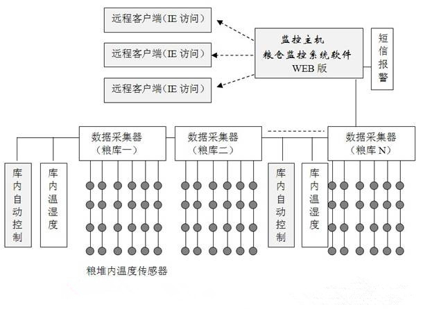 采用目前穩(wěn)定**的數(shù)字化溫(濕)溫測量技術、數(shù)字通信技術和計算技術,對各監(jiān)測點的溫度進行統(tǒng)一采集和管理,并通過溫度監(jiān)測軟件進行分析。通過軟件可以實時顯示糧食中各溫點的溫度、濕度和糧倉內(nèi)的空氣。具有實時顯示、實時曲線、歷史曲線、數(shù)據(jù)自動記錄和存儲、超限軟件報警、短信報警、生成報表、數(shù)據(jù)導出、支持遠程WEB訪問監(jiān)控數(shù)據(jù)等功能。