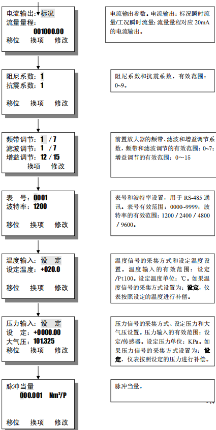 三、旋進(jìn)旋渦流量計(jì)用戶參數(shù)的設(shè)定
