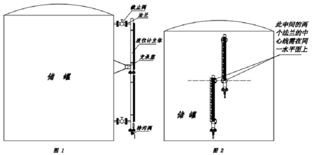 計為側(cè)裝磁翻板液位計安裝示意圖